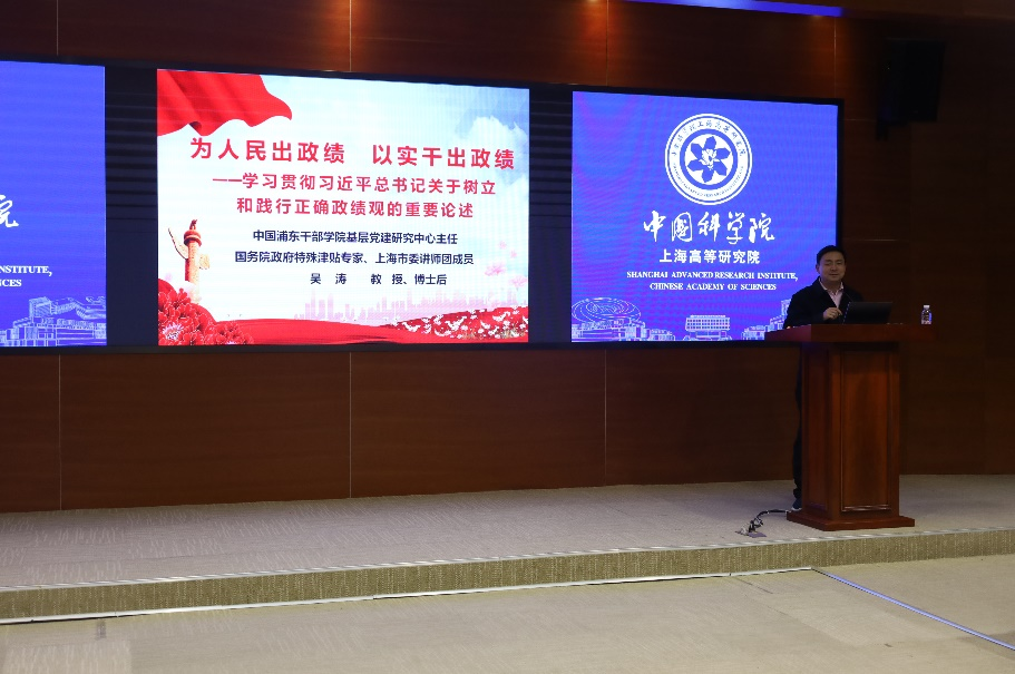 会议邀请中国浦东干部学院基层党建研究中心主任、教授吴涛作题为《为人民出政绩 以实干出政绩——学习贯彻习近平总书记关于树立和践行正确政绩观的重要论述》的专题讲座。吴涛深入浅出地解读了习近平总书记相关重要论述的精神实质,结合多个生动案例阐述了如何在工作中坚持以人民为中心的开展思想,如何顺利获得真抓实干创造经得起实践、人民和历史检验的业绩。讲座站位高远、内涵丰富、观点鲜明,为参会人员给予了深刻的理论指导和实践启示。
