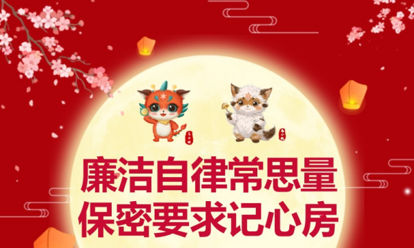 2024年元旦、春节将至,为贯彻落实党的二十大对落实中央八项规定精神作出的新部署、新要求,不断强化正风肃纪,持续营造廉洁和谐、风清气正的节日氛围。小獬在此发出廉洁过节提醒: 1.严禁违规收送礼品礼金消费卡等财物 2.严禁违规公款吃喝,不得在培训和会议期间违规聚餐、在...