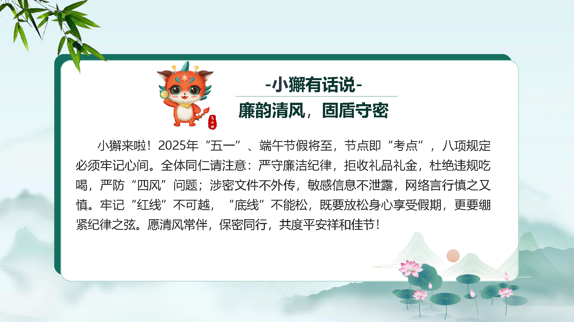 小獬有话说 | 廉洁纪律记心头,保密规定要严守