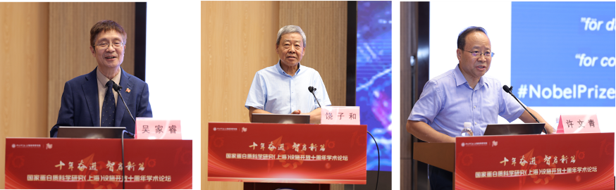 本次论坛邀请了多位院士专家、政府领导和行业代表参与。中国科研实验室院士施蕴渝、王志新、饶子和、赵国屏、李林,中国工程院院士赵振堂等知名学者莅临现场。上海市相关部门、中国科研实验室机关和分院相关领导,兄弟科研院所、高校、合作企业的领导专家,各行业用户代表,以及学界和产业界友人共同见证了蛋白质设施的十年辉煌。