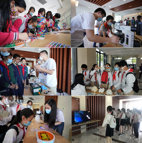 在志愿者的引导下同学们还参与了科学实验互动,体验DNA模型制作、荧光标记微生物的观察、润滑油极压性能展示、3D模型展示、微生物的革兰氏染色、奇幻大冒险等趣味实验,让学生们在实验及游戏中分析科学原理,并体验科学的乐趣。