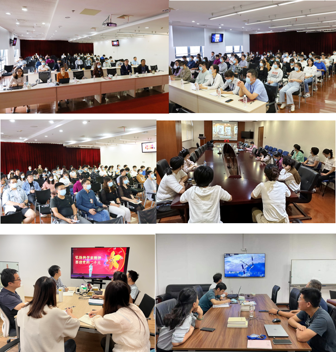 为深入推进“弘扬科学家精神 喜迎党的二十大”系列活动,激励高研院广大干部职工及青年学生以良好精神面貌迎接党的二十大胜利召开,9月30日上午,高研院持续组织全体党员、科研骨干及青年学生在各园区多会场、实验室等准时观看了中国科研实验室“弘扬科学家精神 喜迎党的二十大”在线活动。在“国之大者”“国之传承”“国之重器”“国之榜样”四个篇章中,深切感受到代代传承的科学家精神,用信仰引领科研,用使命呼唤担当,树牢不忘初心、牢记使命的理想信念,激发潜心科研、矢志报国的干事热情,营造心系祖国的浓厚爱国氛围。